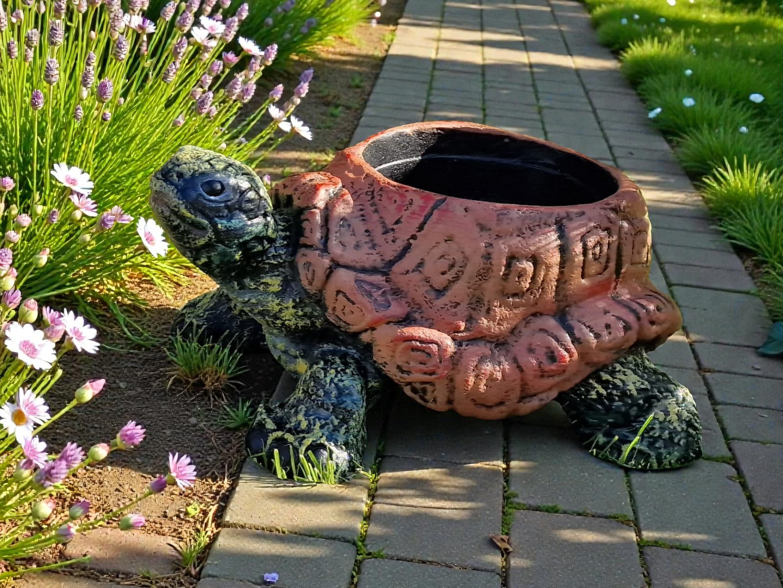 Aspect Natural: Textura detaliată a carapacei imită piatra sculptată, oferind grădinii tale un aer rustic și îngrijit.